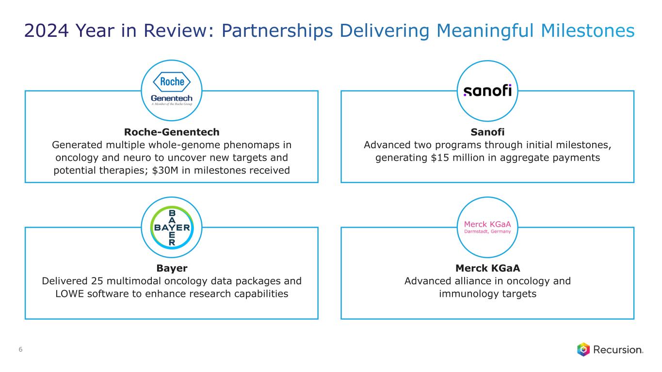 •Immunology & Oncology Achievements: Through this collaboration, Recursion is using its end-to-end integrated platform to discover and advance up to 15 novel targets in the oncology and immunology therapeutic areas.