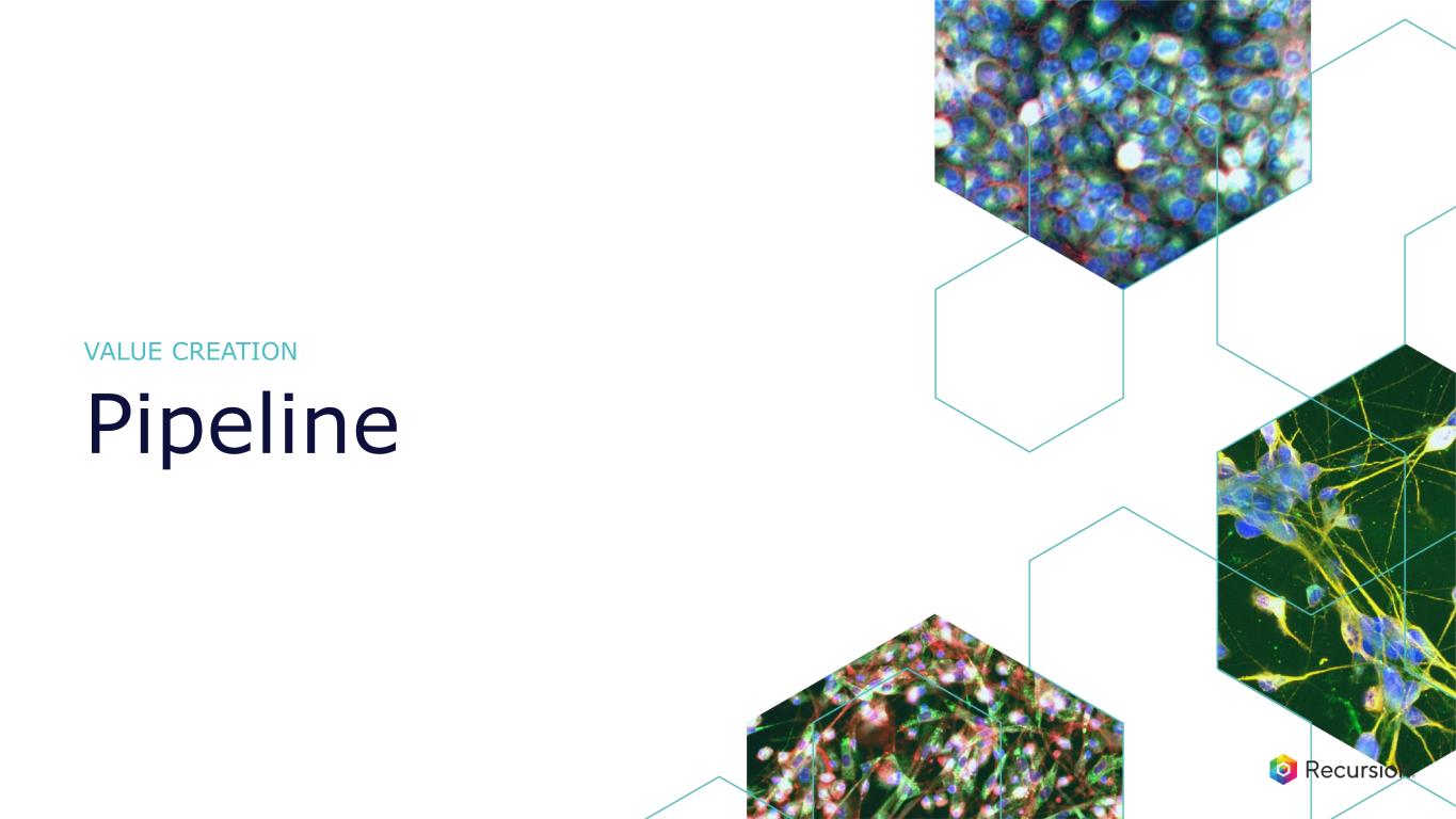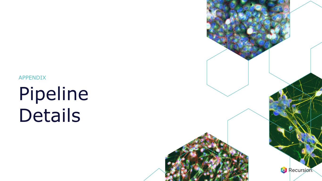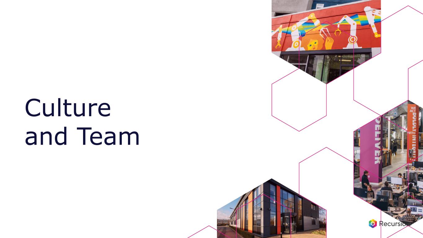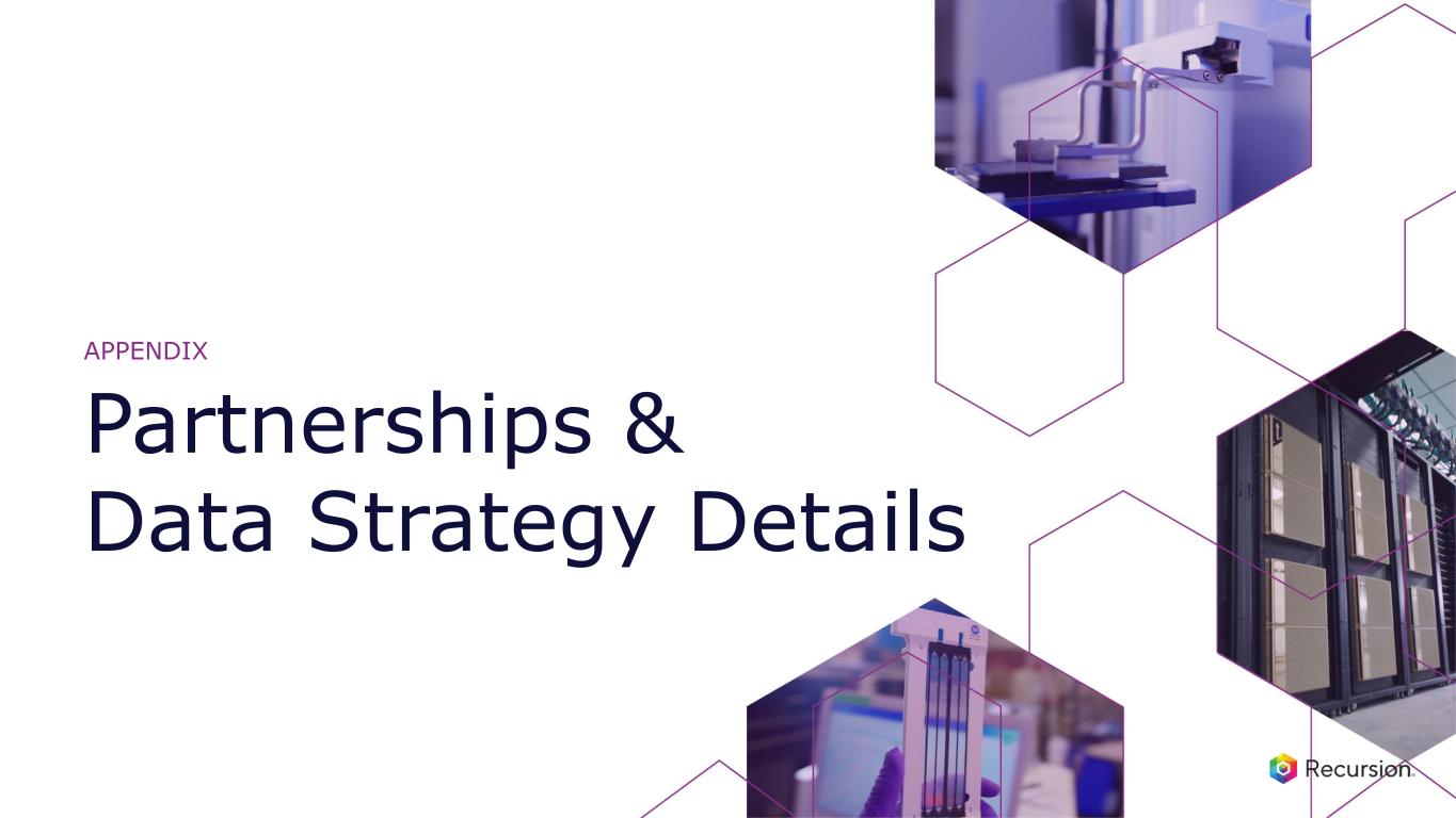 •Full stack AI powered platform: Our constantly-evolving Recursion OS spans target discovery through clinical development, enabling efficient molecule design and testing for both first and best-in-class opportunities.