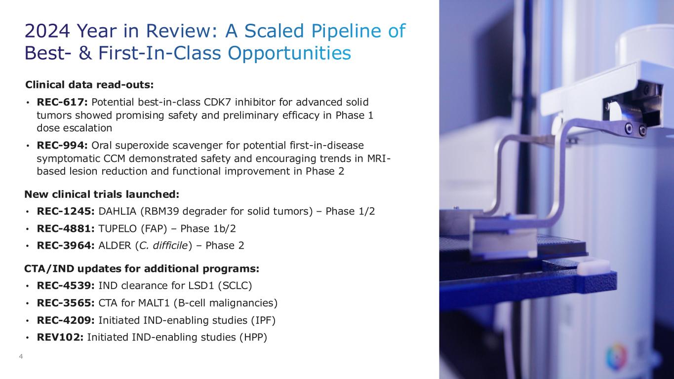 •Clinical Results: Recursion demonstrated promising early efficacy data for two programs in 2024